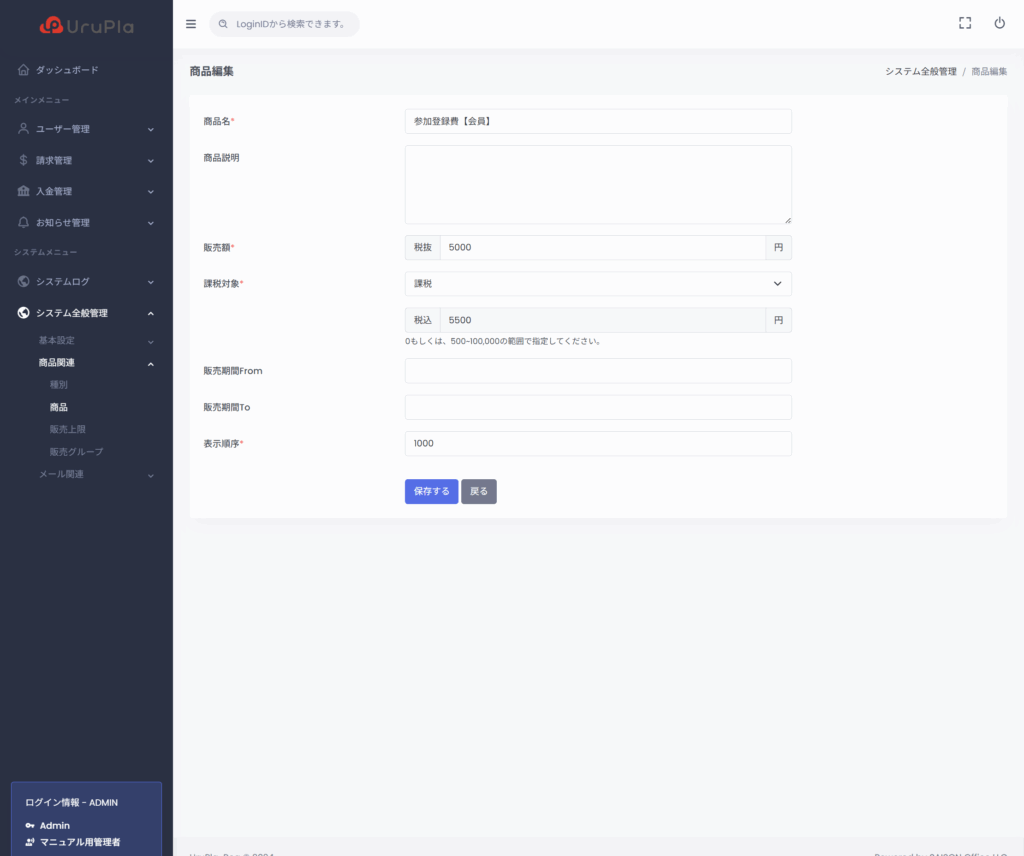 管理者 システム全般管理 [商品関連 商品作成 / 編集]