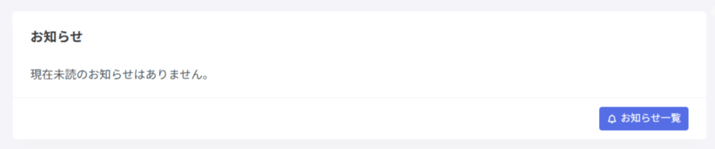 - お知らせ一覧:過去のお知らせを確認できます。詳細はマニュアル「ユーザー:お知らせ」をご覧ください。
