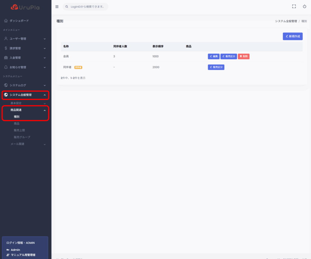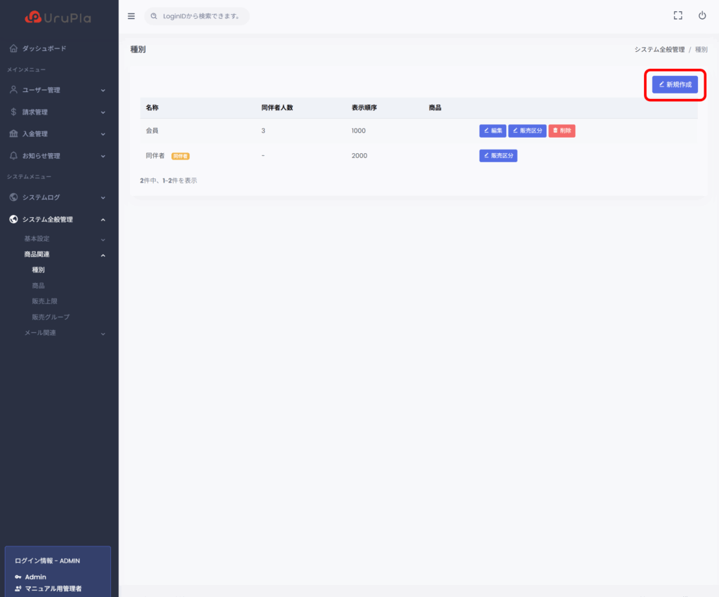 会員の種別を作成することができます。
